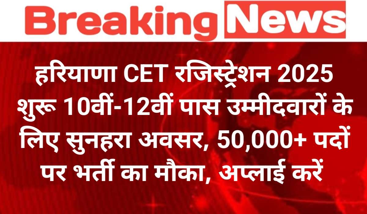 Haryana CET Registration 2025: 10वीं-12वीं पास युवाओं के लिए सुनहरा मौका, 50,000+ पदों पर भर्ती, जानें आवेदन प्रक्रिया, योग्यता और एग्जाम डिटेल्स