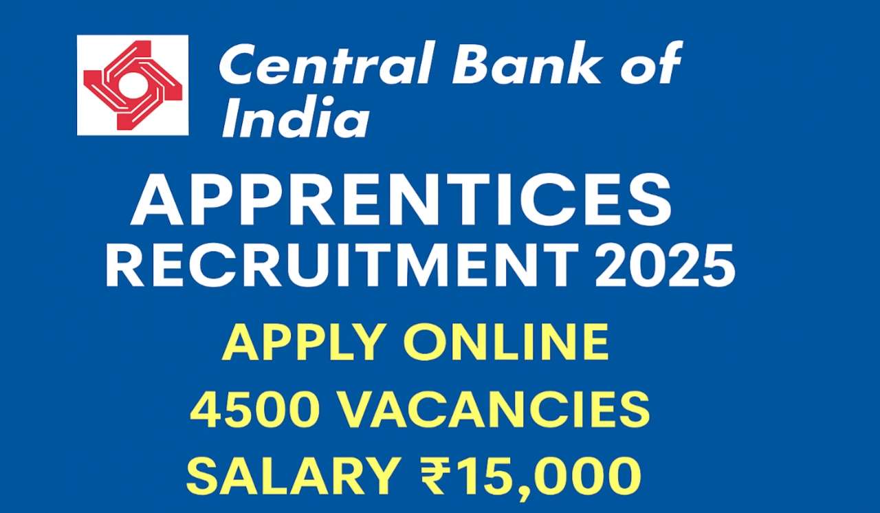Central Bank of India Apprentices Recruitment 2025: Apply Online for 4500 Vacancies, Salary ₹15,000